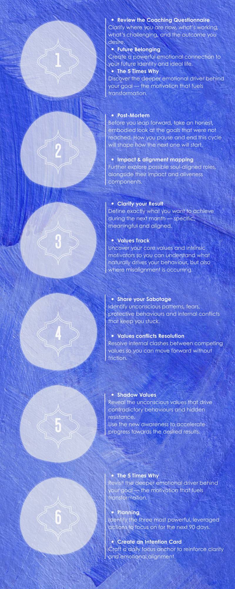 Also, this program is designed as a dynamic coaching practice, using multiple techniques to accelerate transformation. If you choose to continue after the initial 6weeks, we transition into a blend of dynamic and more traditional coaching.